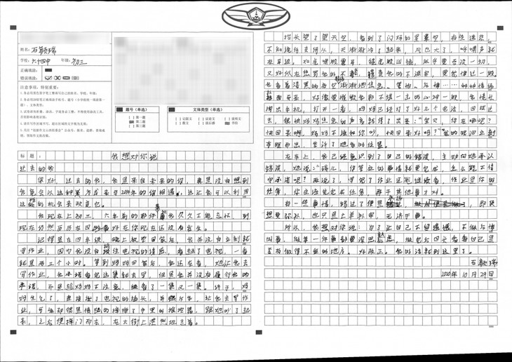 姓名:石颜瑞