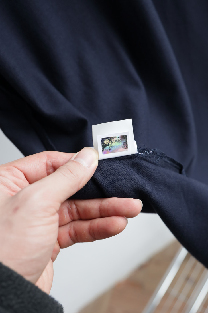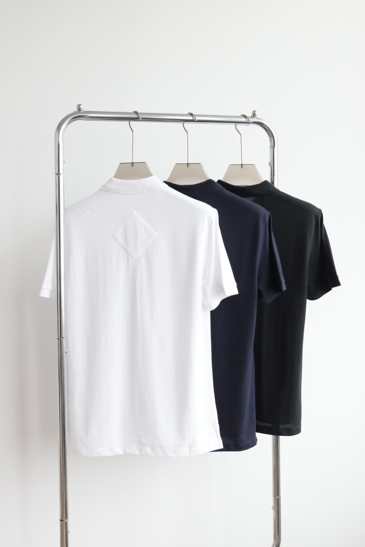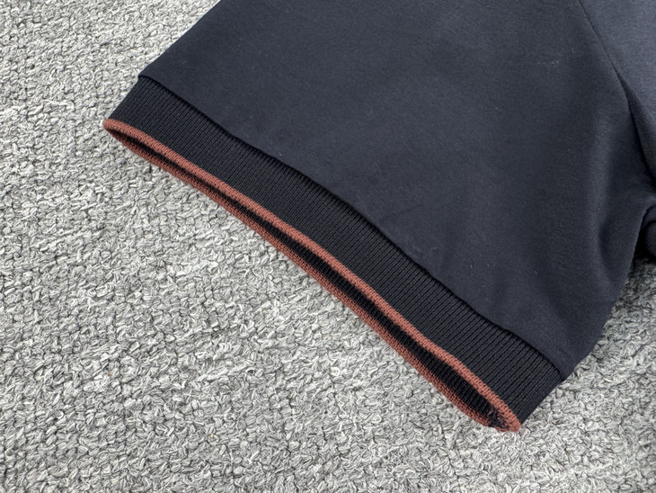 高成本定织针织领扣和袖口,胸口同色系联名刺绣标识