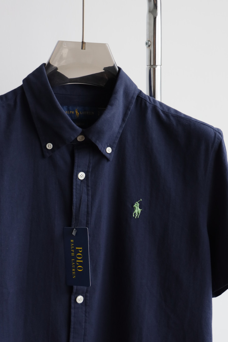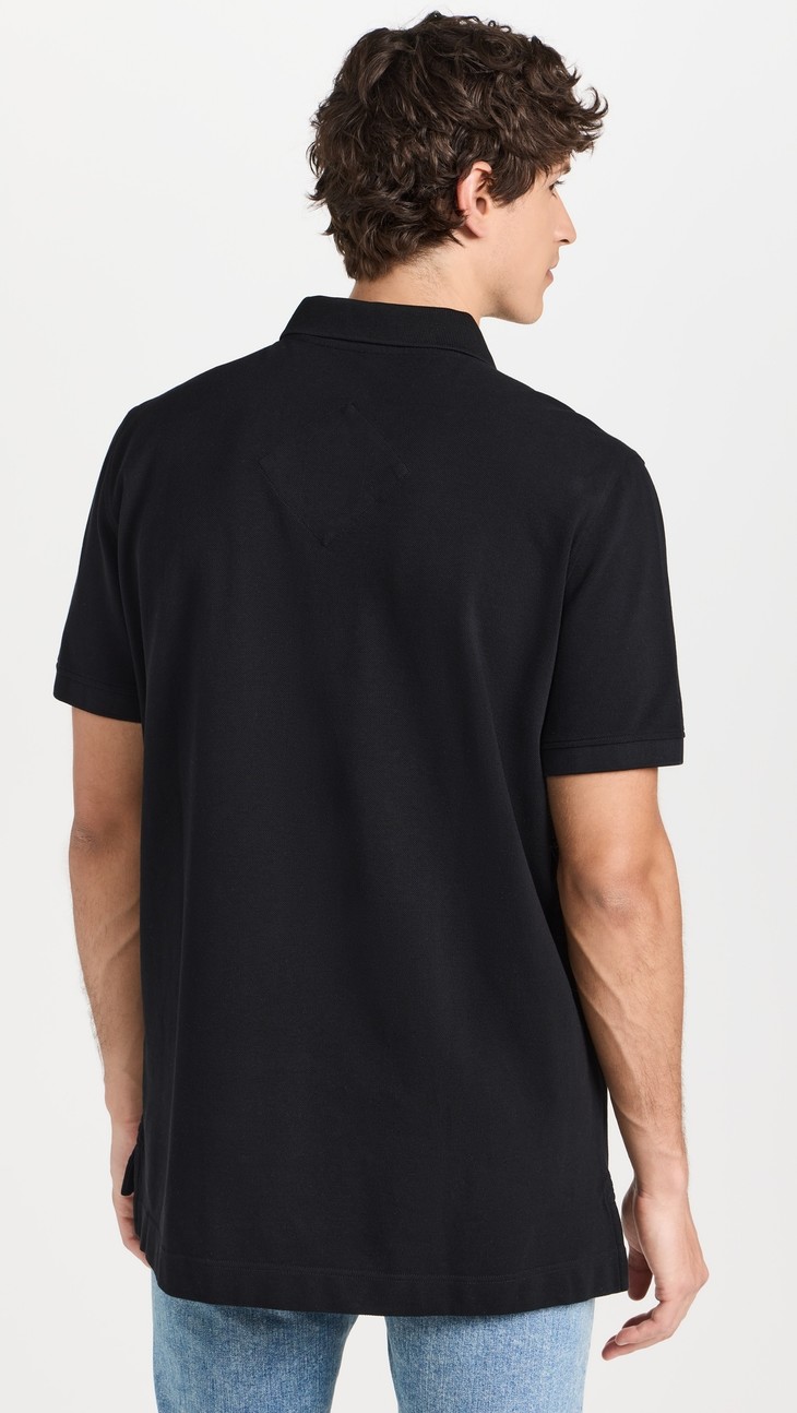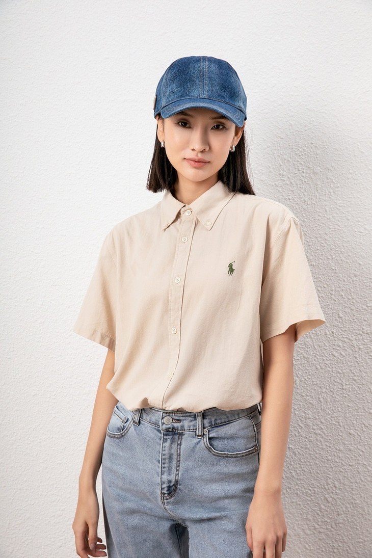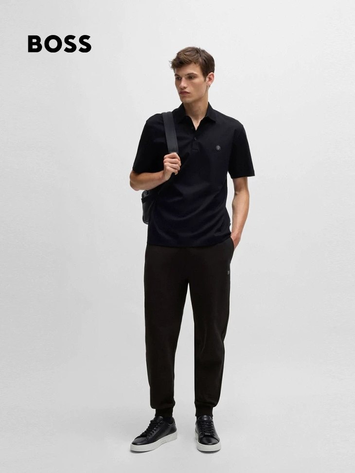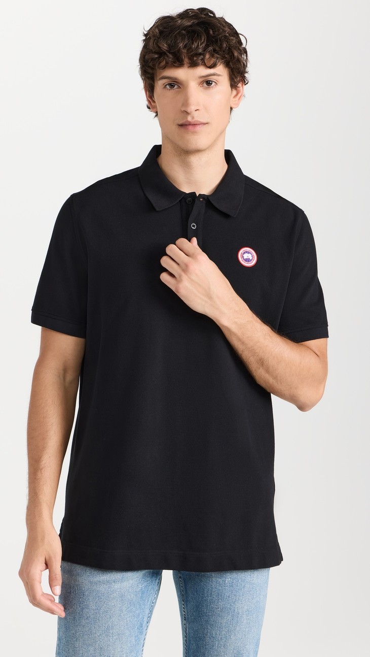 简约扣式尖领开襟设计,胸前拼色小徽标刺绣点缀衬显经典