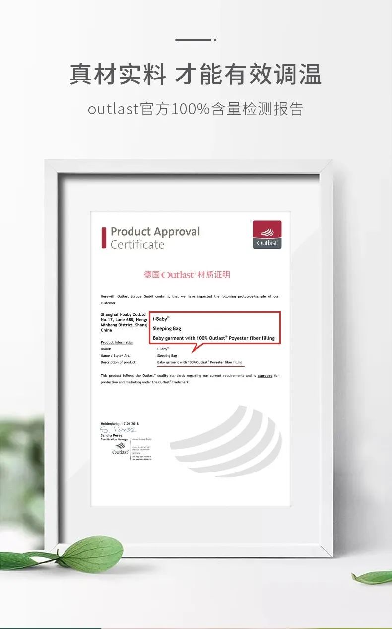 这款恒温纱布睡袋是outlast调温纤维、竹纤维、棉纤维黄金配比而成,outlast恒温技术能对温度、湿度进行有效管理,在宝宝出汗前对皮肤表层微气候进行动态调节,可以一定程度上减少出汗,给宝宝冷热适宜的睡眠环境;竹纤维拥有强大的吸湿透气性,将其与棉混纺轻盈舒适,夏天宝宝穿上它,长痱子湿疹的几率会小很多。