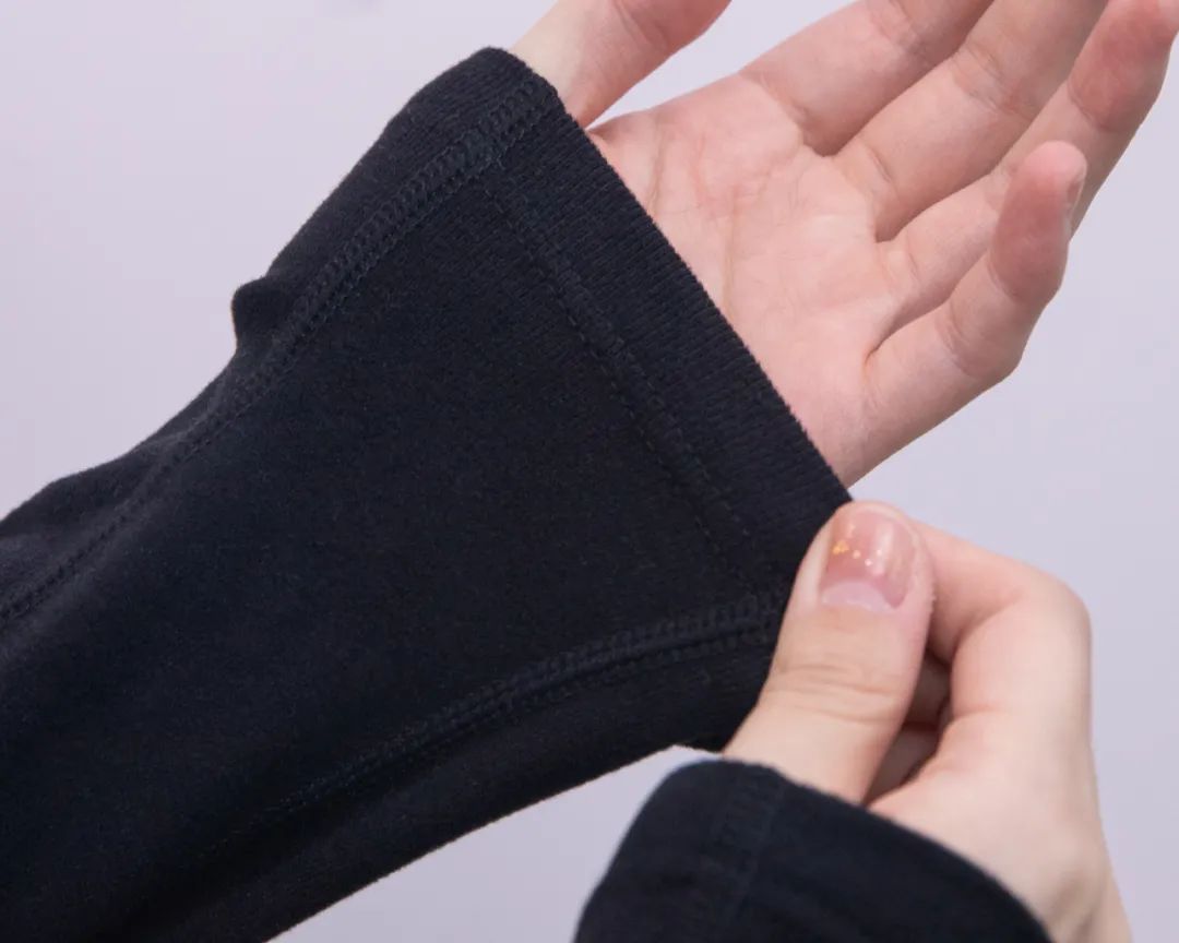 不过,我可真的是挖到宝了。别瞧它才薄薄的一层,其实它可是双面面料,最里层是一层细细的绒毛,软软糯糯的手感,一下把给我征服了!穿上就感觉被云朵包裹住一样,一点也不扎。