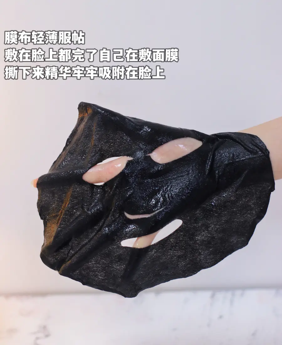 有很强的吸附力👏不管是躺着數面膜还是坐着面膜精华液都不会向下低落,而且它的剪裁很立体,很贴合脸型!