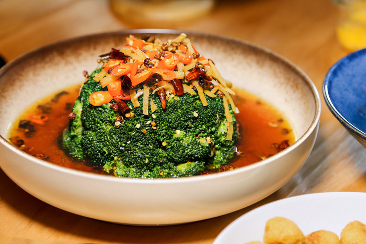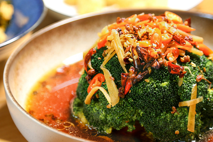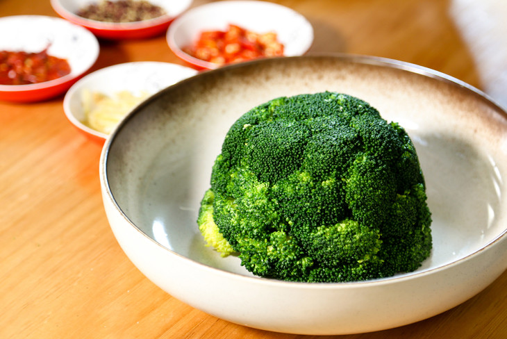 4、熬制好的汤汁淋在西蓝花上