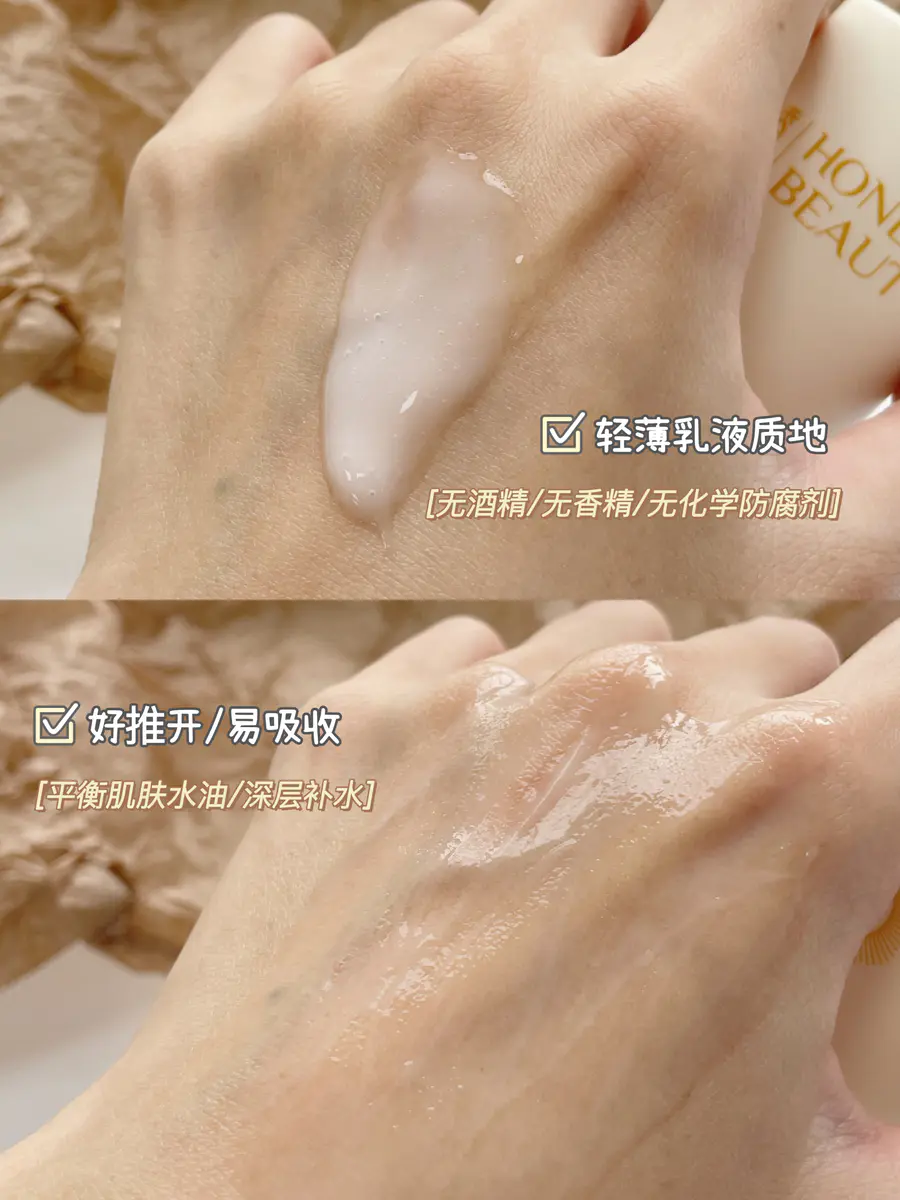 乳液是轻薄乳液质地,上脸好推开不厚重不黏腻
