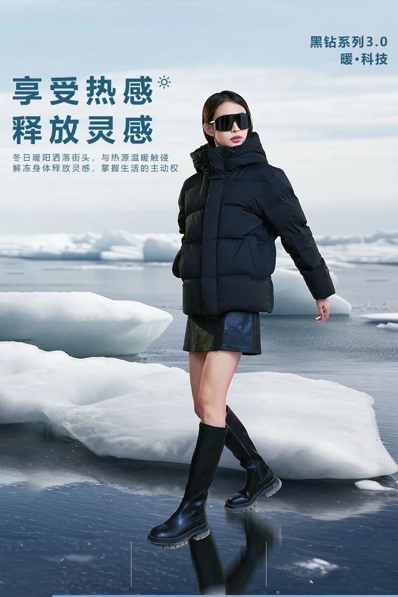 而黑钻3.0鹅绒服的石墨烯银离子暖背设计,能精准为后背供暖,让温暖从背部蔓延至全身,瞬间驱散寒意。