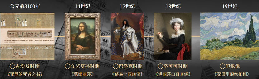 从17世纪巴洛克时期、18世纪洛可可时期,到19世纪印象派。