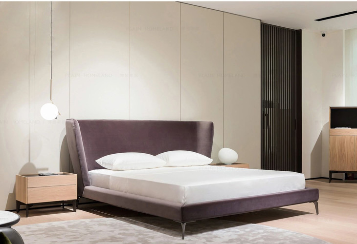 今天分享来自HANSPLAIN的一款意式轻奢床,Della床通过线条与曲线所构造将理性与柔软结合起来。流畅的线条感,浪漫莹润的紫色丝绒质地,金属高脚设计质感十足,提升轻盈平衡美感,也方便日常清洁。弧形靠背收敛的两侧,饱满的床身填充给予人舒适包裹,满满安全感,带来一整晚踏实睡眠体验~