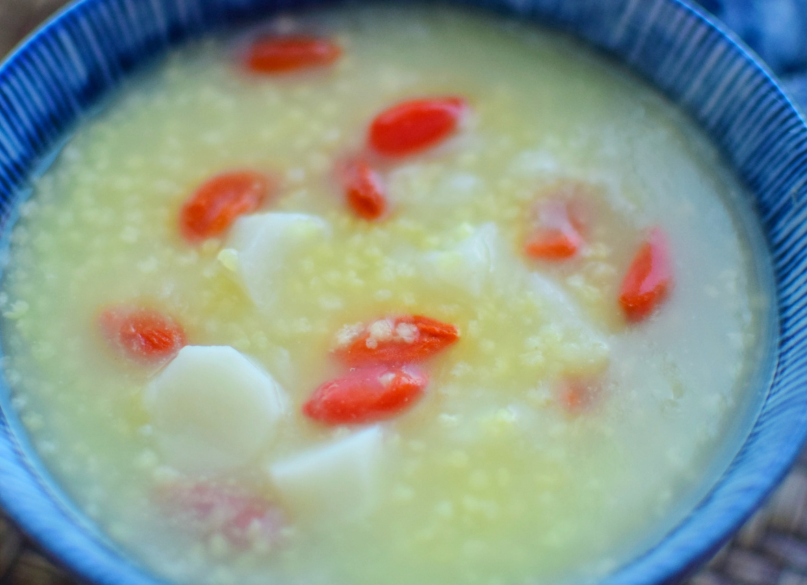 材料:小米100克、山药 15片、大枣 9个 枸杞10颗