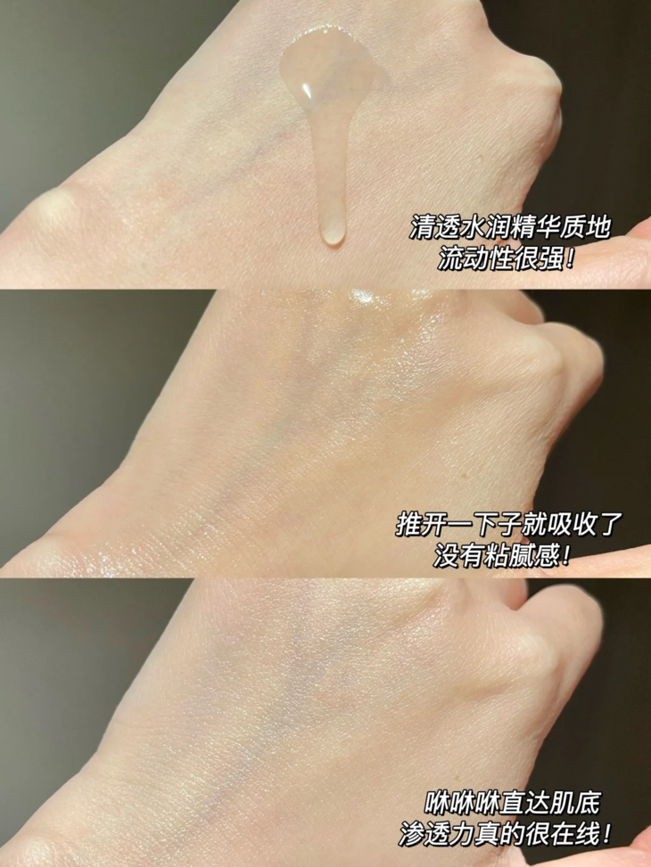 质地是清透流动性强的精华液质地