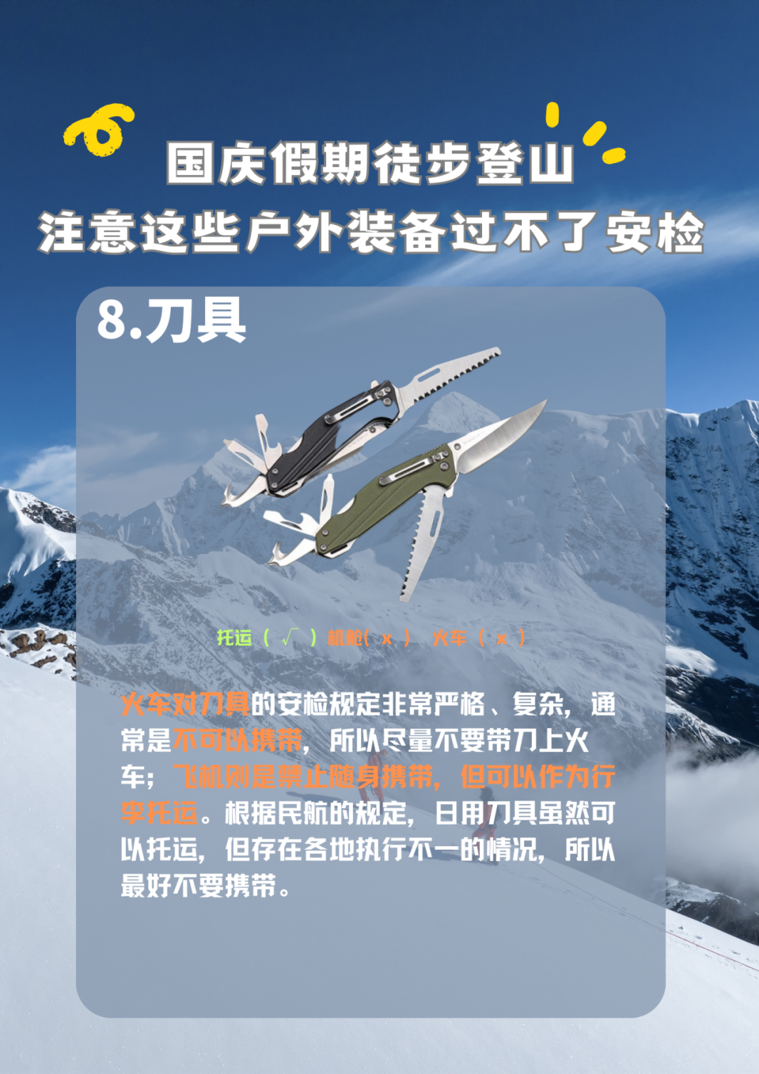 【小课堂】国庆假期徒步登山,这些户外装备过不了安检
