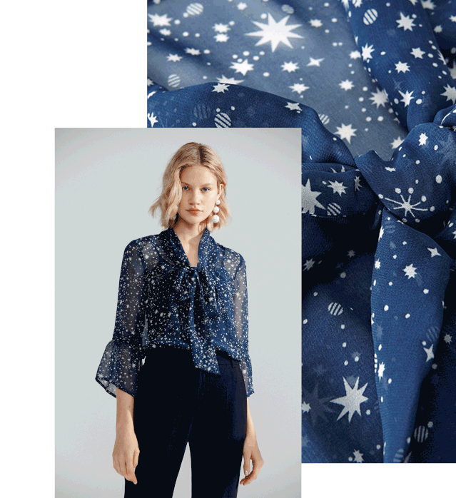 透视感的材质让深蓝色也变得轻盈通透,所以不用担心这款蓝色会显老,充满星光的蓝色薄纱质感,让你重返爱做梦的年纪。