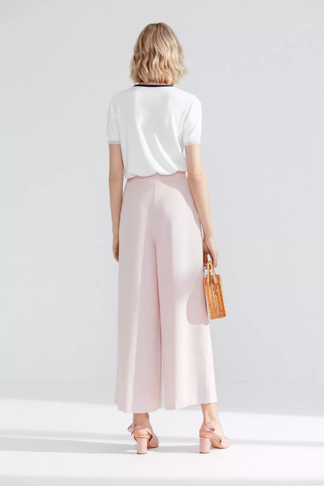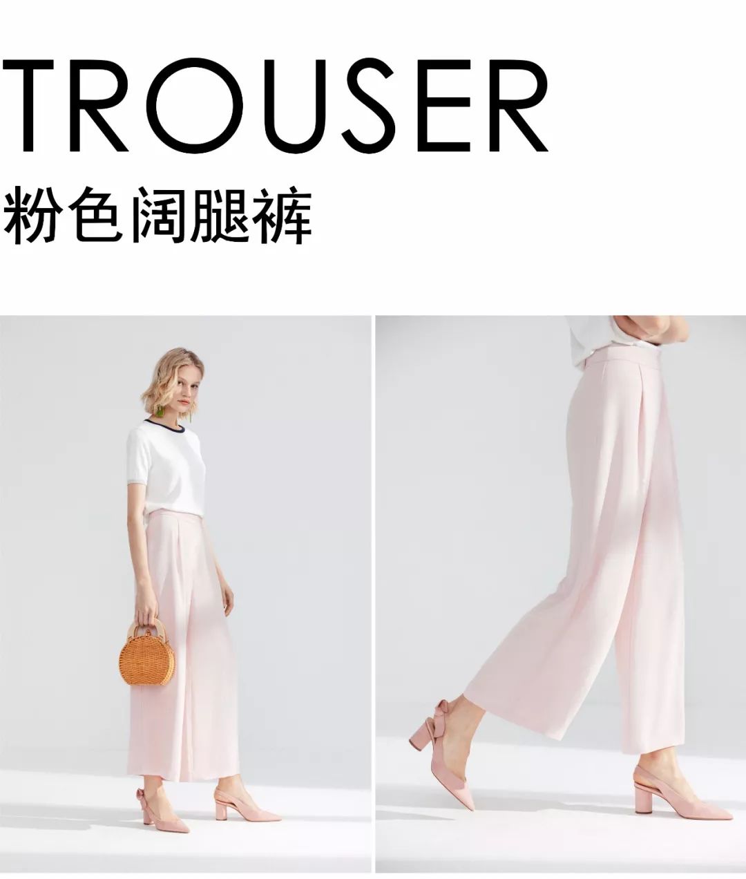 最遮肉的阔腿裤,选用马卡龙粉色作主调,相信很多菇凉都抗拒不了它的少女感,很减龄的色系,与阔腿裤型结合一起,尽显年轻活力。