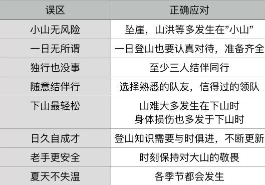 这些错误的习惯和心态,主要体现在八类登山误区中。首先,便是对小山的轻视。