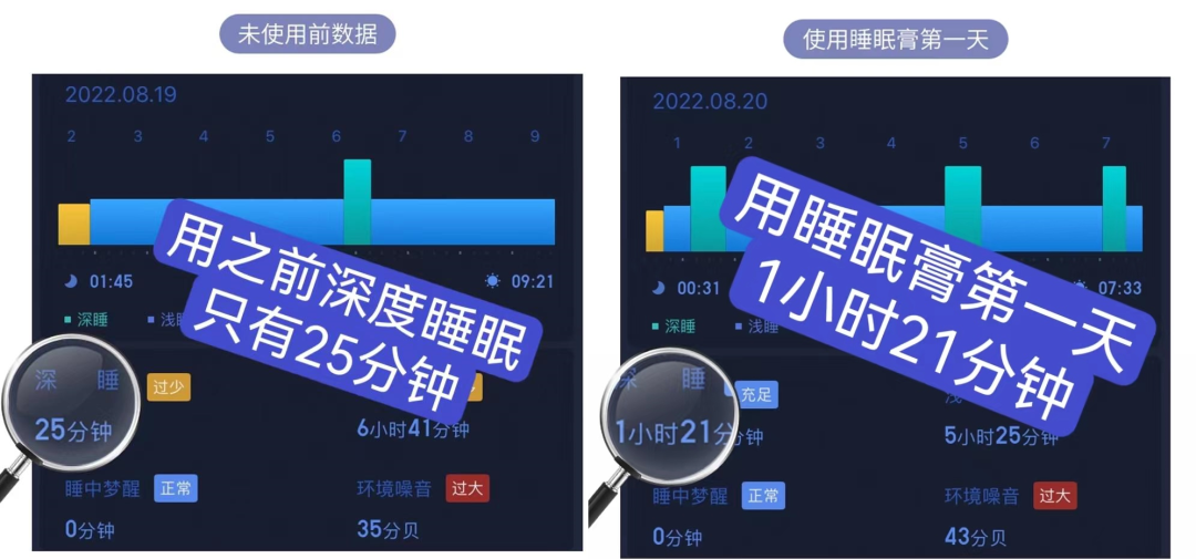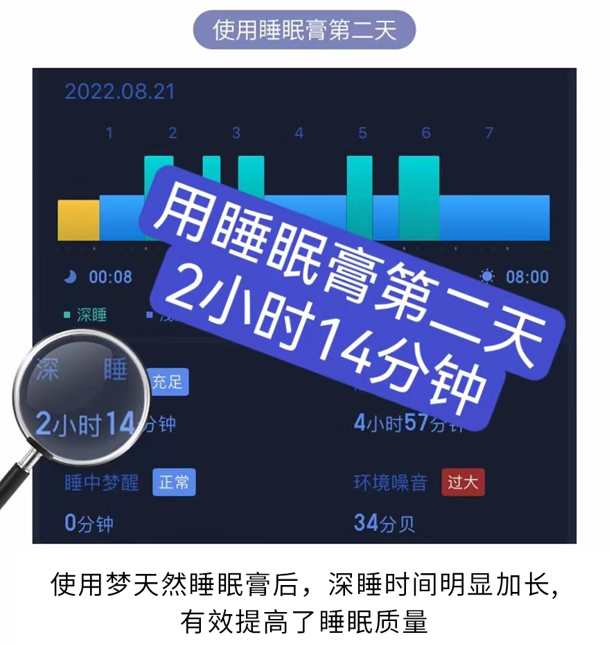 第二天使用睡眠膏,睡眠质量更好,深度睡眠时间达到了2小时。