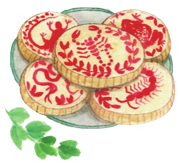 五毒饼,并不是真的将“五毒”做馅,而是有蝎子、蛇、壁虎、蜈蚣、蟾蜍等花纹的饼。
