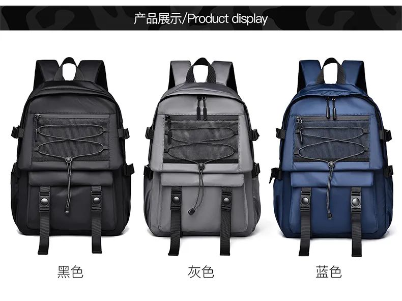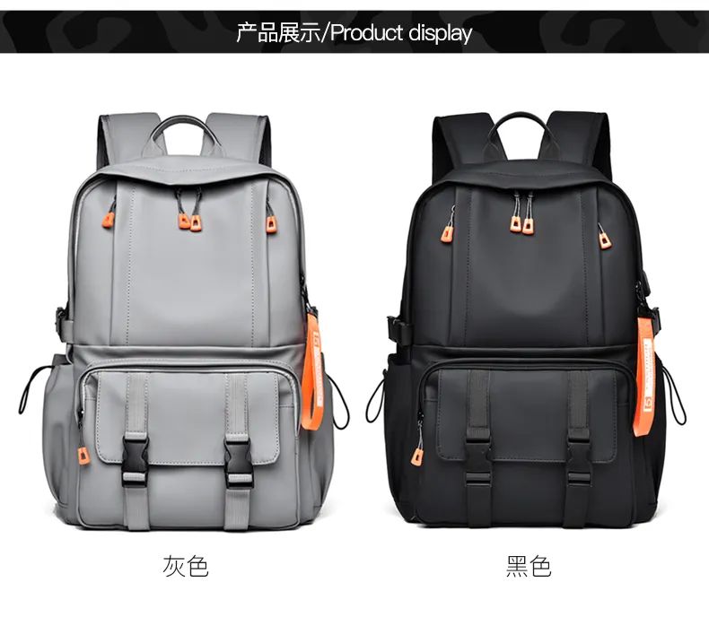 这两款双肩包整体的面料采用高密度牛津防泼水面料。