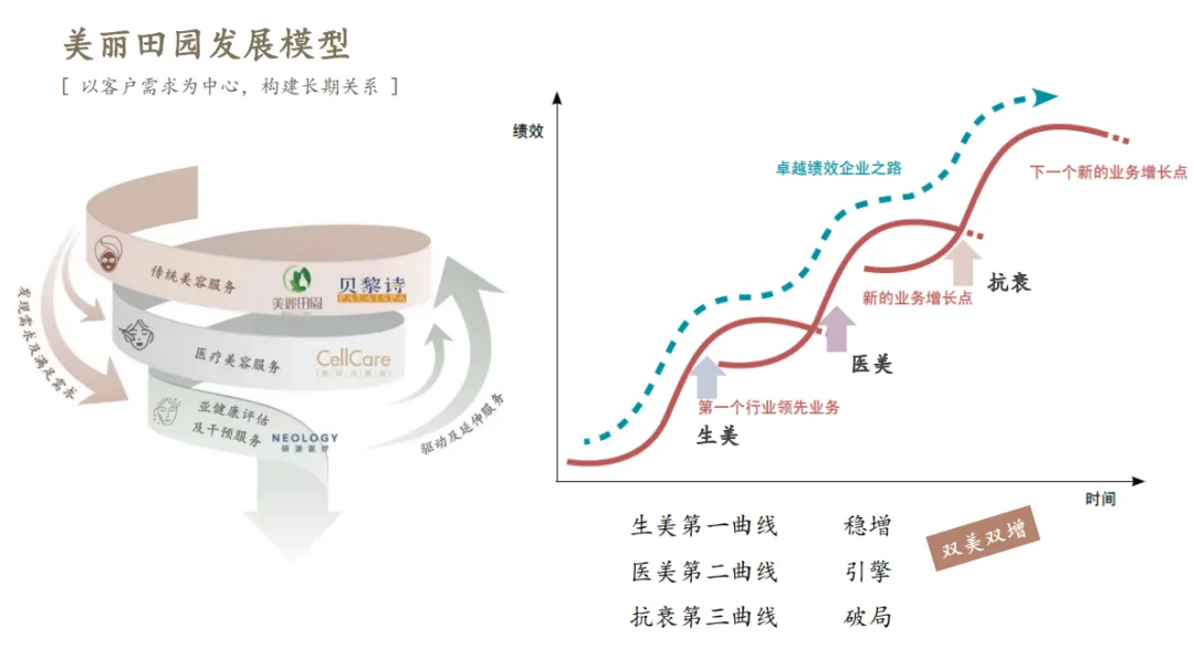 在这一背景下,美丽田园进行“双美融合”的闭环服务打法,利用传统美容的基本盘给医美或亚健康医疗服务导流,都是从多方面围绕三大业务曲线,去稳固并收拢客户多元需求的有效举措。