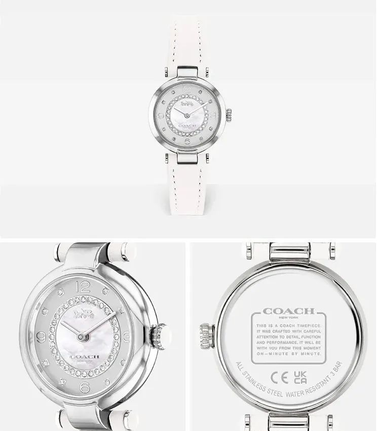 COACH手表表带和表盘背面都以雕刻技法清晰的打上了品牌logo、故事铭牌,低调中尽显奢华品质。