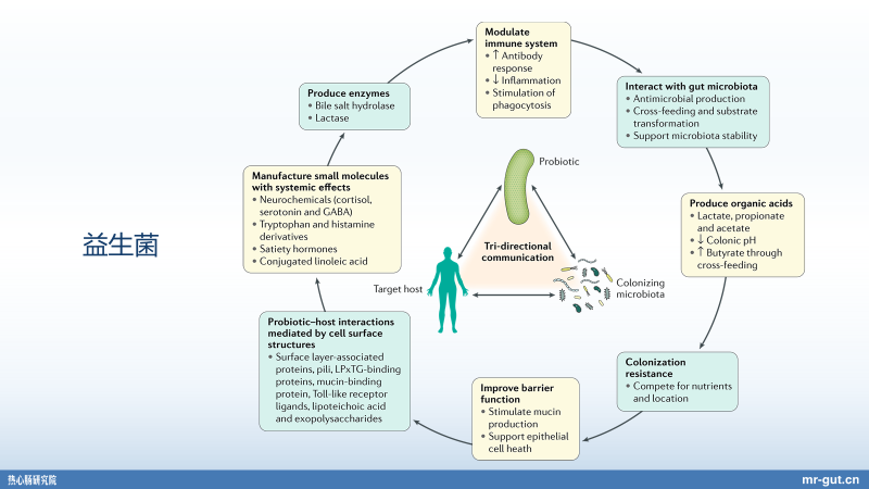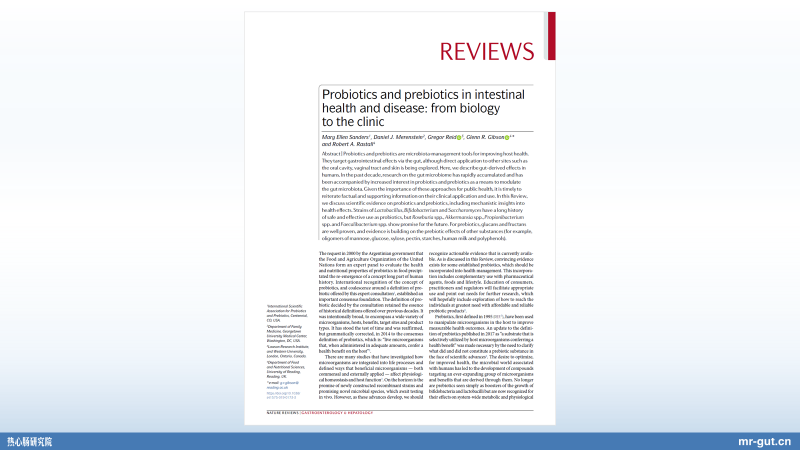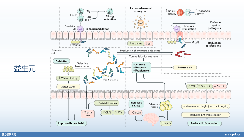Nature Reviews 发了一篇这样的相关 review(综述),就是关于益生元和益生菌是怎样产生作用。