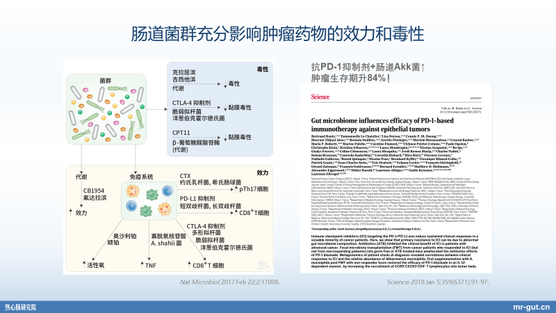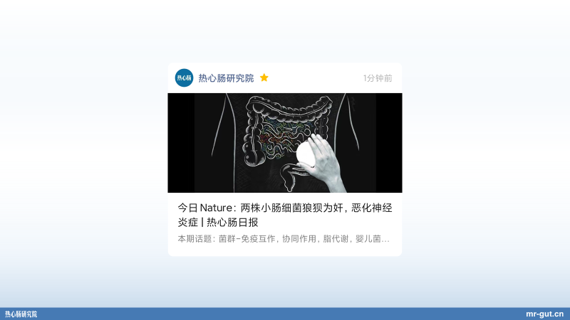 这是今年年初由中山大学的赵文婧教授,当时她还在哈佛做研究的时候,跟导师发表在《自然》杂志上的一篇非常非常重要的,我也觉得是非常有意思的一篇文章。在肠道里面有一个共生的菌叫