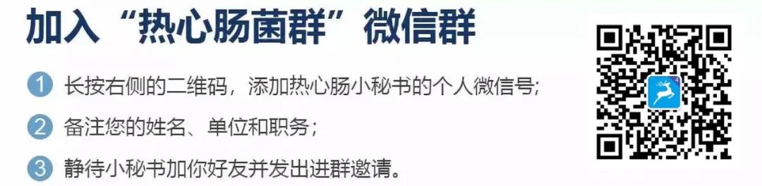 我们有热心肠菌群微信群,每天分享最新研究,感兴趣的读者请按以下方法申请入群: