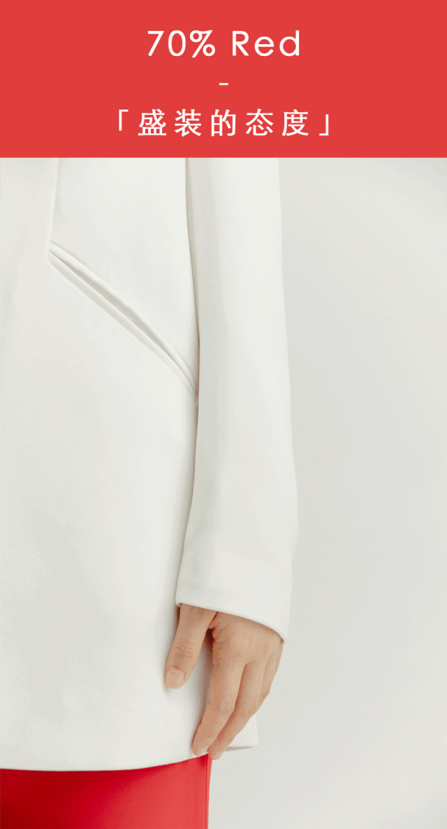 生活无需时刻盛装,但必须保持盛装的态度,出门前精心挑选的搭配,细心描绘的红唇,为平凡的日子带来美妙的期待。大面积红色很难hold ? 用3分纯白,增添10分优雅。