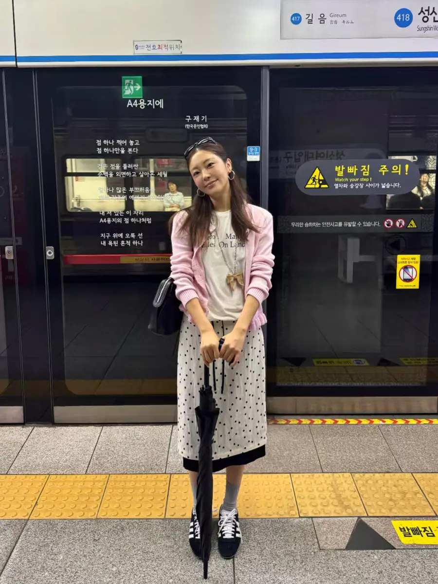 新品上身丨粉糯针织配波点裙,首尔漫游的甜妹公式🔮