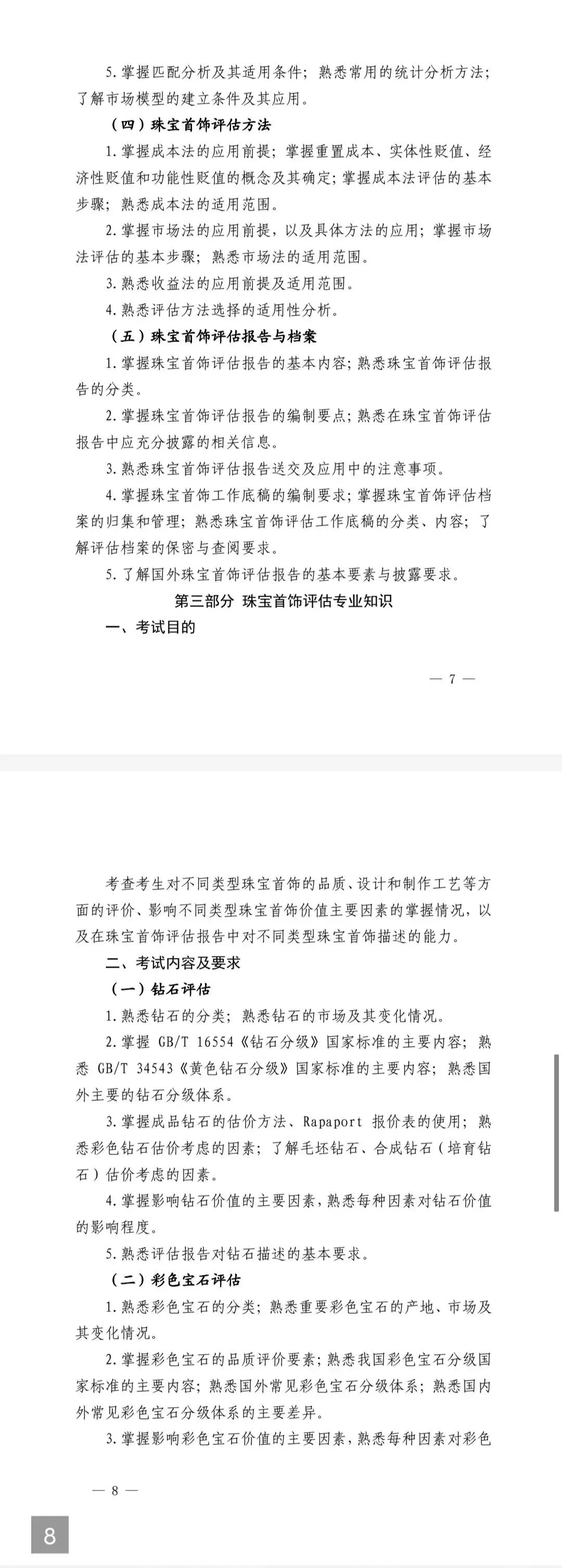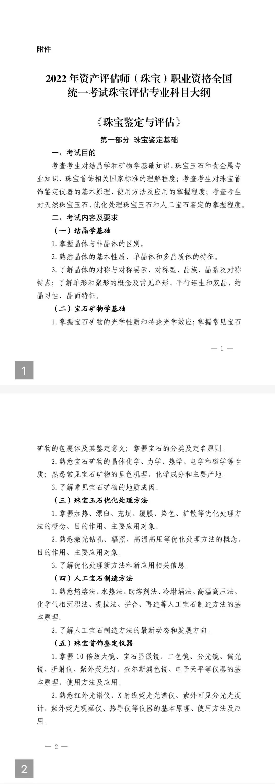 《2022年资产评估师(珠宝)职业资格全国统一考试珠宝评估专业科目大纲》