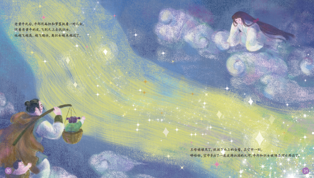 还有体现我们文化自信的中国传统文化故事改编,用浅显易懂的语言配合唯美清新的画风来展现传统文化的魅力。这里多说几句,我们选择的这些传统文化故事或是贴近现实(七夕《牛郎织女》,或是希望引发孩子哲学思考(《盘古开天》),或是体现值得学习的坚韧精神(《愚公移山》)……关于改编的作者,我们请到的是中国人民大学古代文学专业的博士,可以这样说:杂志上的每个故事都是经过精心挑选和严谨编写的。