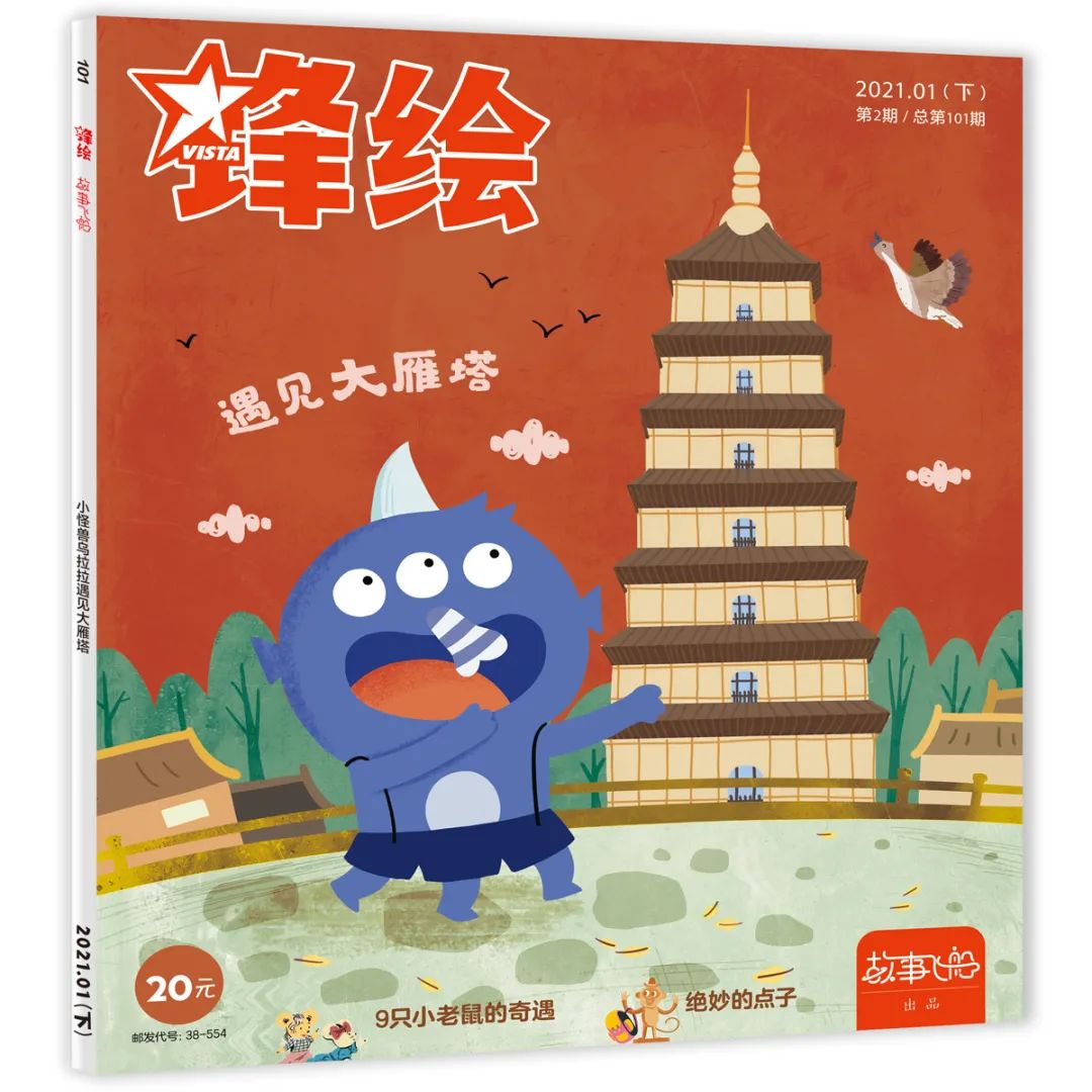 《锋绘》杂志2021年逐步增加了人文知识探索的内容,如《小怪兽乌拉拉奇妙的旅行遇见大雁塔》