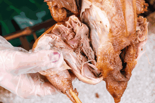 数小时腌制,鸡肉已经足够入味,不用蘸任何调料味道都很香,直接“开撕”就能够满足“肉欲”。