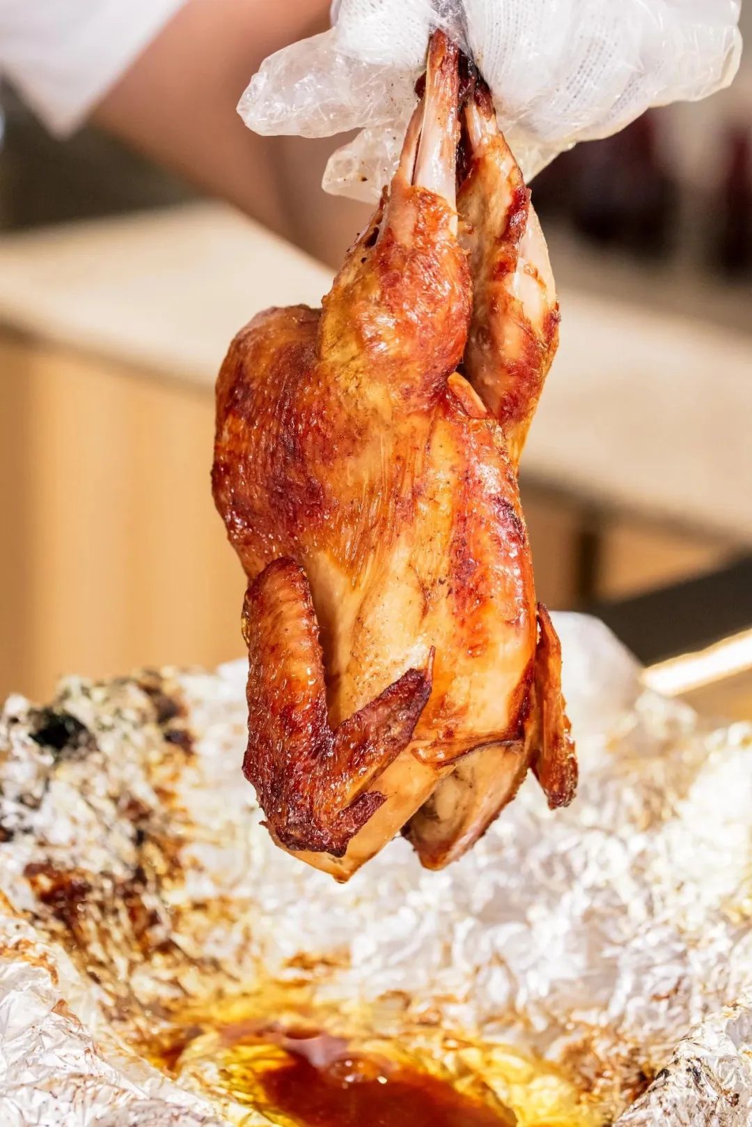 与市面上常见的用鸡精香精堆砌起来的烤鸡不同,由八角、花椒、肉桂、香叶等,打造的烤鸡味道,鸡肉不仅毫无腥味,还衍生出一种极为天然纯粹的鲜香。