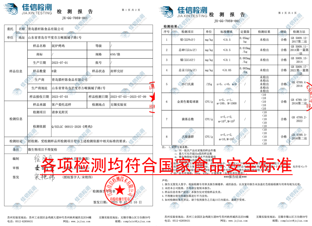 烤鸡也经过了第三方质检公司的严格检测,各项指标均符合国家食品安全标准,才敢送到你的手上!