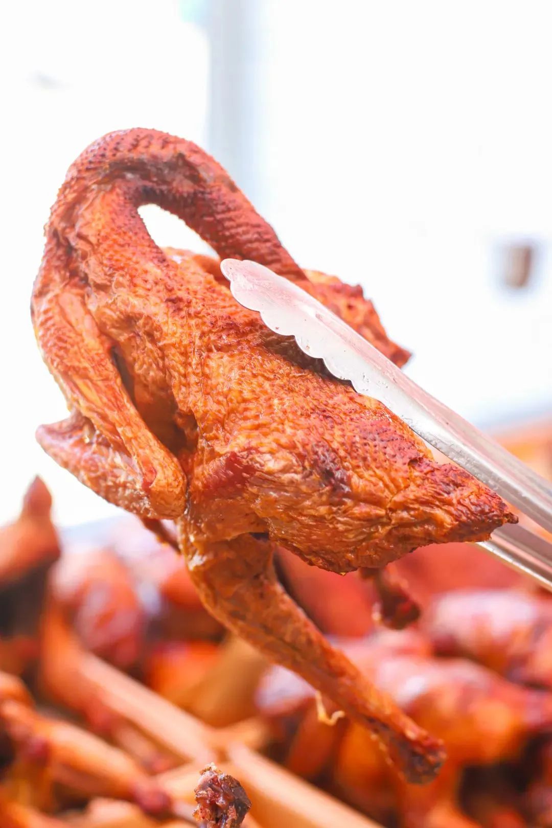 刚出炉的烤鸡色泽鲜美、肉质紧实,可谓妥妥的当家花旦,凭借着皮脆肉嫩、五香脱骨的独特风味,始终稳居店内销量的宝座。