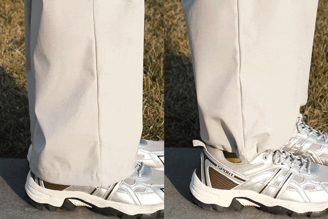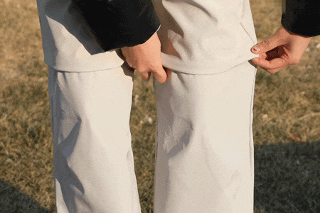 抽拉裤脚的抽绳,防止从脚底灌风,一裤两穿
