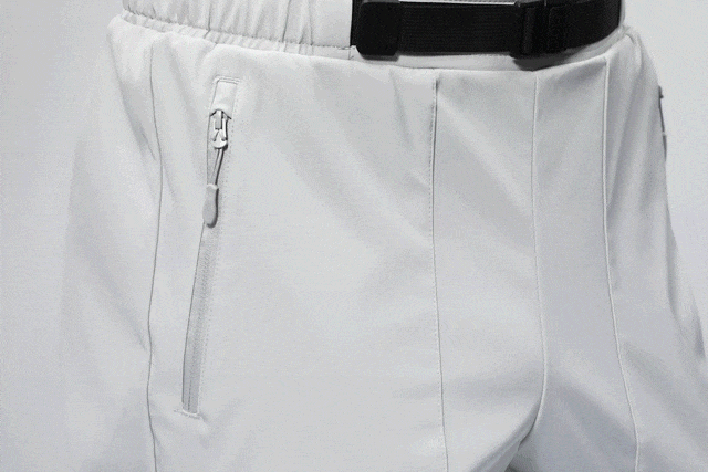 素湃软壳裤防风面料与防风细节构成了一个强力的防风系统,防风等级≤1.37mm/s,能将风阻隔在外。