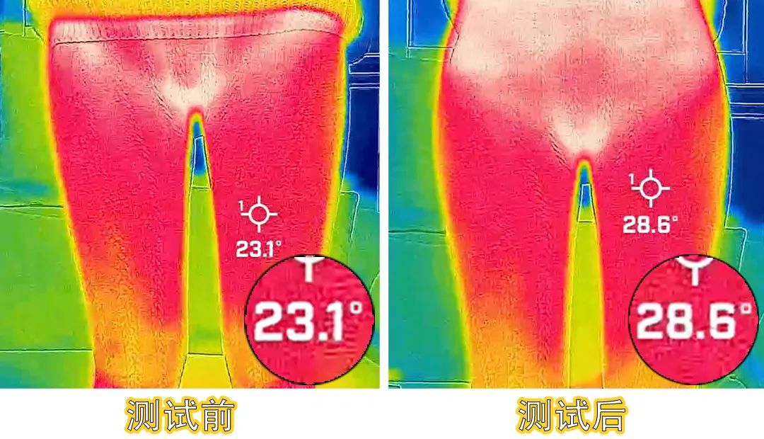 对比穿前的温度,穿后体温上升了5.5 °C,保温率在线。
