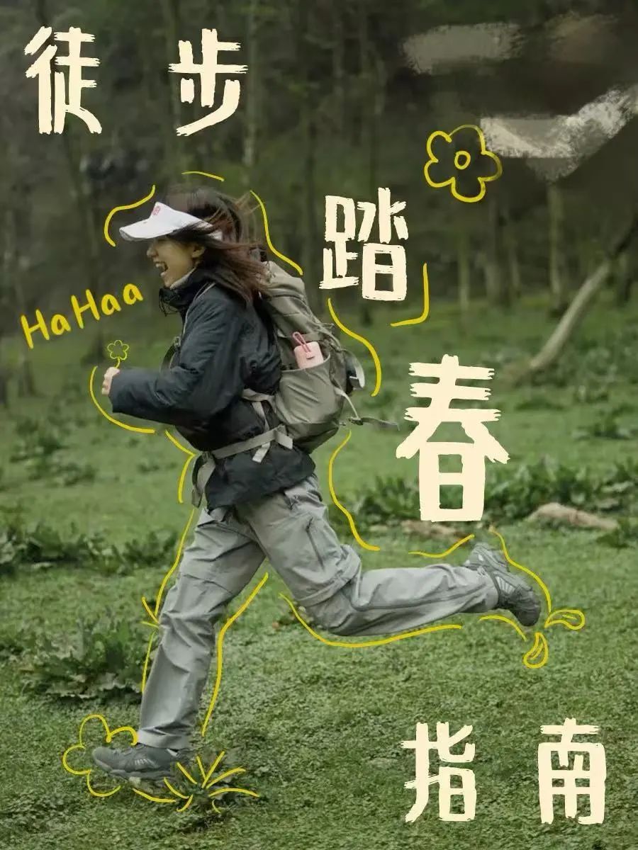 初春的户外出行,上身搭配软壳衣、脚踩登山鞋,随便就是一版出片Look~放肆去野