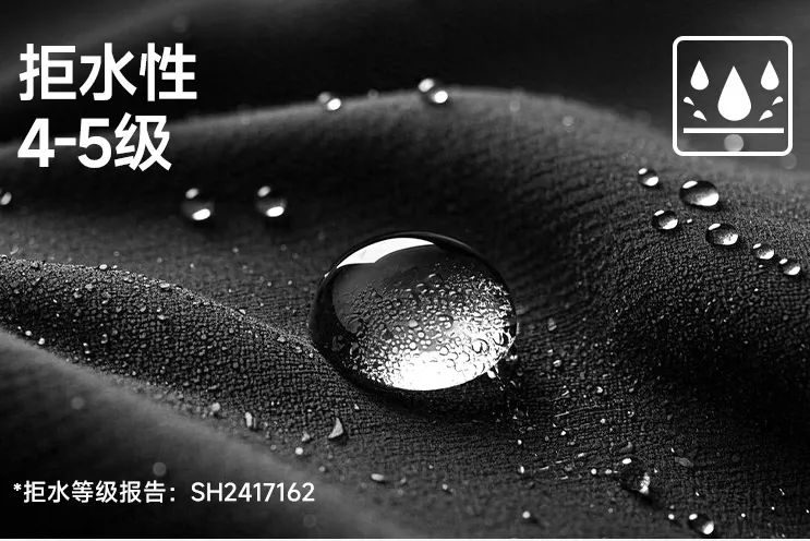 2、4-5级防泼水、耐污,防风:无惧小雨,耐沾污阻隔日常液态污渍;防风透湿面料采用高透膜、减少出汗的湿冷感