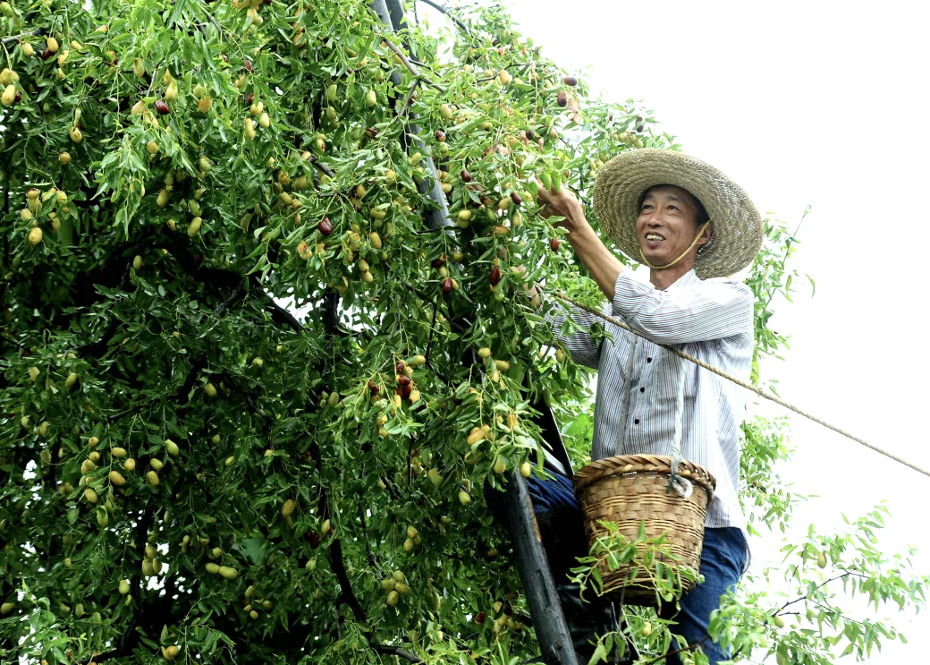 8月中下旬的三山岛上硕果累累的枣树几乎成了一道风景。由于枣树一般较高,采摘时需要爬上梯子,将成熟后颜色发红的枣子摘下。一位种植户说,今年夏天炎热少雨,枣子虽然目前个头不大,但是口感比往年还要好一些。枣子本来不太喜欢过多雨水,但这位种植户希望可以适当来一两场雨,这样枣子可以长得大一些。枣类不仅营养丰富,更与传统文化有着千丝万缕的联系。诸如“早生贵子”、“祈福祈贵子”、“一日三颗枣、百岁不显老”等民间口彩无不是与枣结合在一起的,为此当地还借"枣”为媒,办起了精彩的文化旅游节庆。