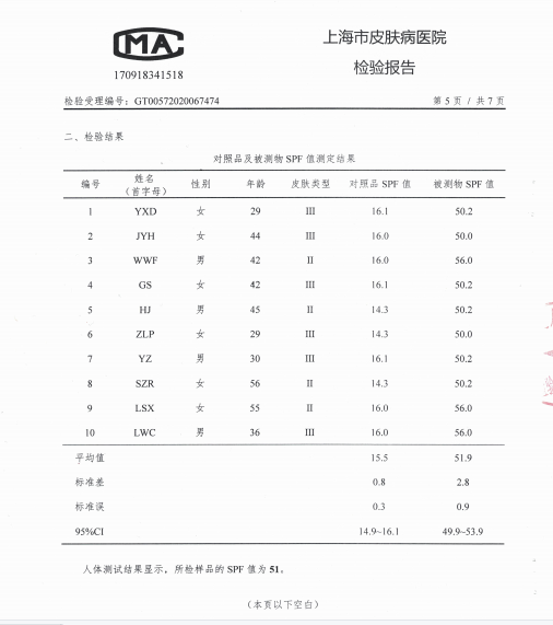 *医院真人测试平均值达 SPF51,产品标注测试最低取整值 SPF50