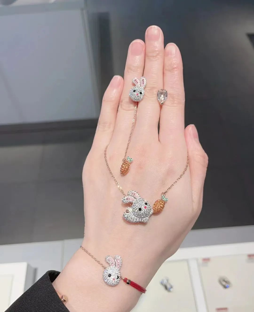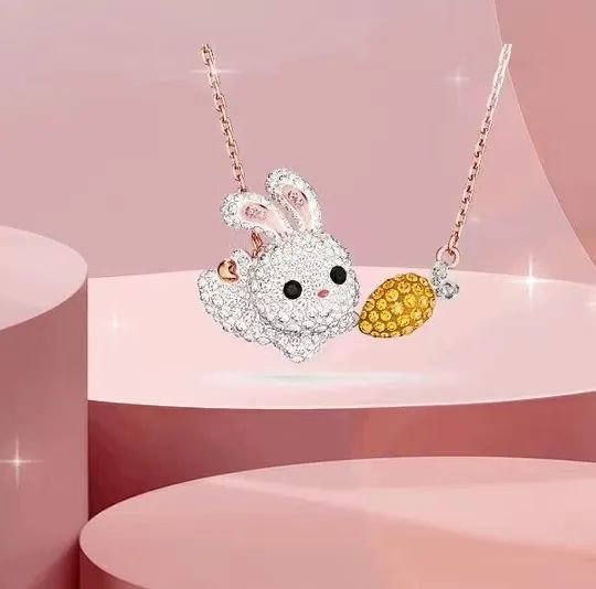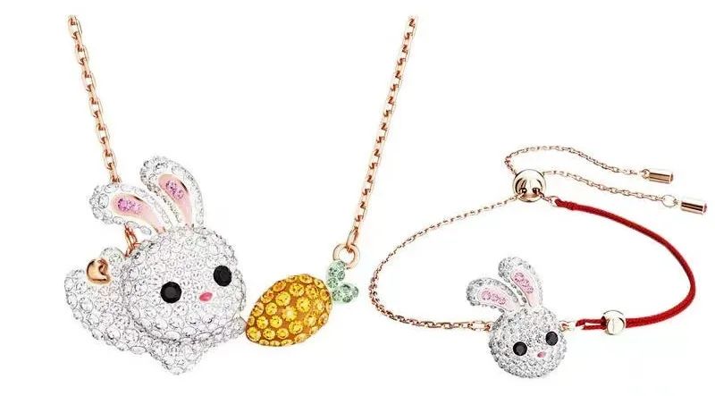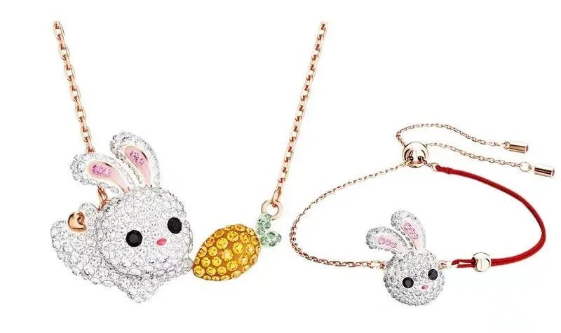 黑天鹅的新春系列施华洛世奇真的在用心造物,饰品之美和兔年元素完美融合。这次,施华洛世奇推出的兔年新春系列包括项链和手链、耳环,造型讨喜,设计萌趣惹人爱。项链、手链和耳钉整体造型都是可爱小兔子,一颗颗小水晶镶嵌出的神态,少女心十足!可爱的小兔子追着一根胡萝卜,悬挂于镀玫瑰金链上,有了胡萝卜的点缀,兔子也变得更生动可爱了~通过低温陶瓷技术Pointiage在整个小兔子吊坠上镶满水晶,blingbling的~闪闪惹人爱~