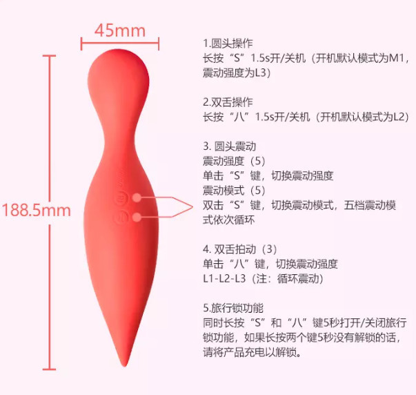 鱼嘴头的60度黄金角度,准确刺激敏感点,还有多种玩法~用一侧灵舌,或者双舌齐上,还可以用力按在某处游走。玩法超多!