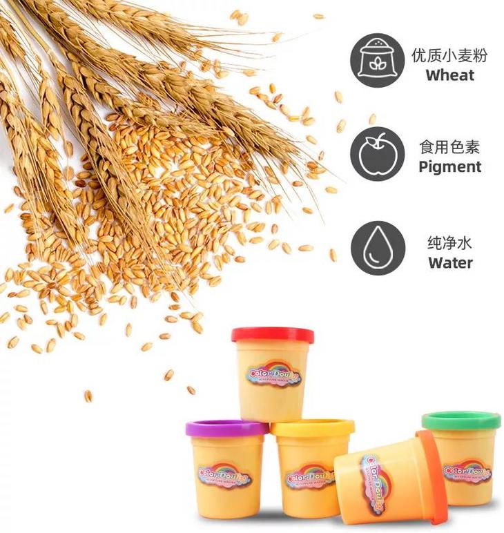 彩泥采用优质小麦粉+食用色素+纯净水制成,手感柔软不粘手、不掉色。