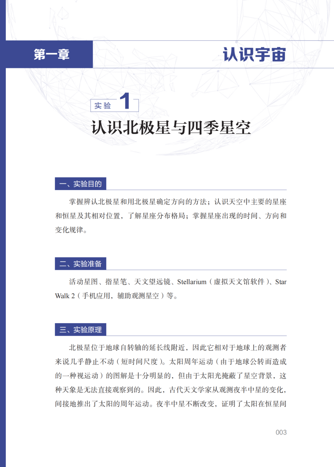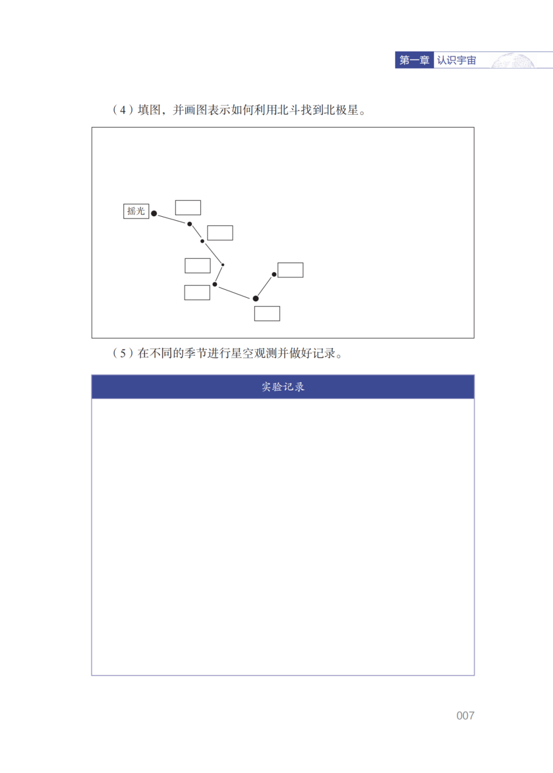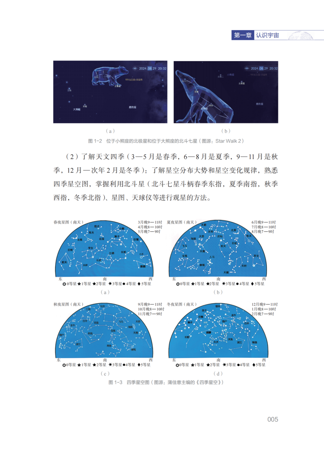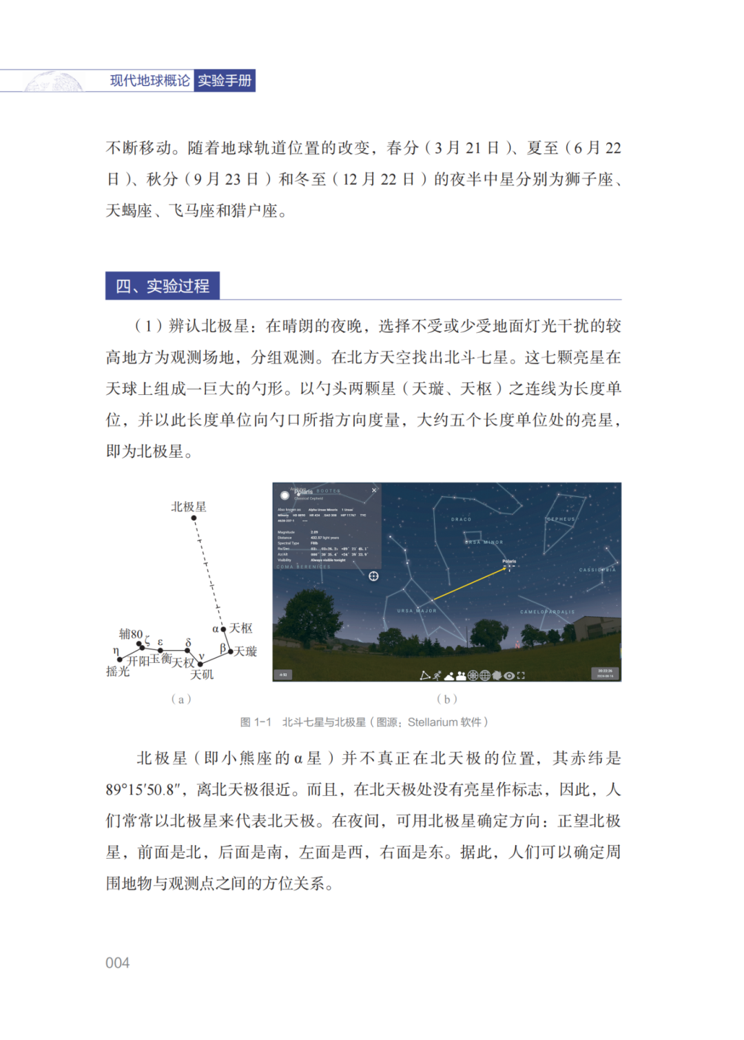 选自《现代地球概论实验手册》第一章实验1:认识北极星与四季星空/滑动查看,可点击放大