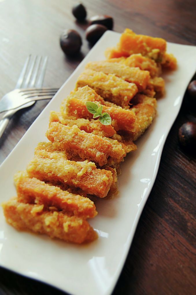 5、放入炸好的南瓜翻炒,让蛋黄均匀裹满南瓜表面;