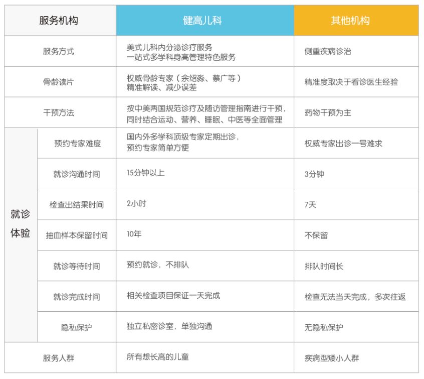 健高儿科美式多学科身高管理服务,按照中国指南,结合美国儿童生长发育专科随访要求,在多学科专家指导下,不仅能够在公立医院医生制定的诊疗方案基础上,由专业团队全程协助医生给予有身高诊疗需求的儿童更加规范和专业的随访管理服务,同时协同营养、运动、睡眠等多学科参与随访管理,实现最全面的规范化随访服务,帮助孩子更好的实现长高疗效;还特别针对期望长得更高的孩子不同的长高需求,围绕影响长高的多种影响因素(运动、营养、睡眠、心理等各方面)进行全面管理,充分发挥孩子自身潜能,达到长高效果。