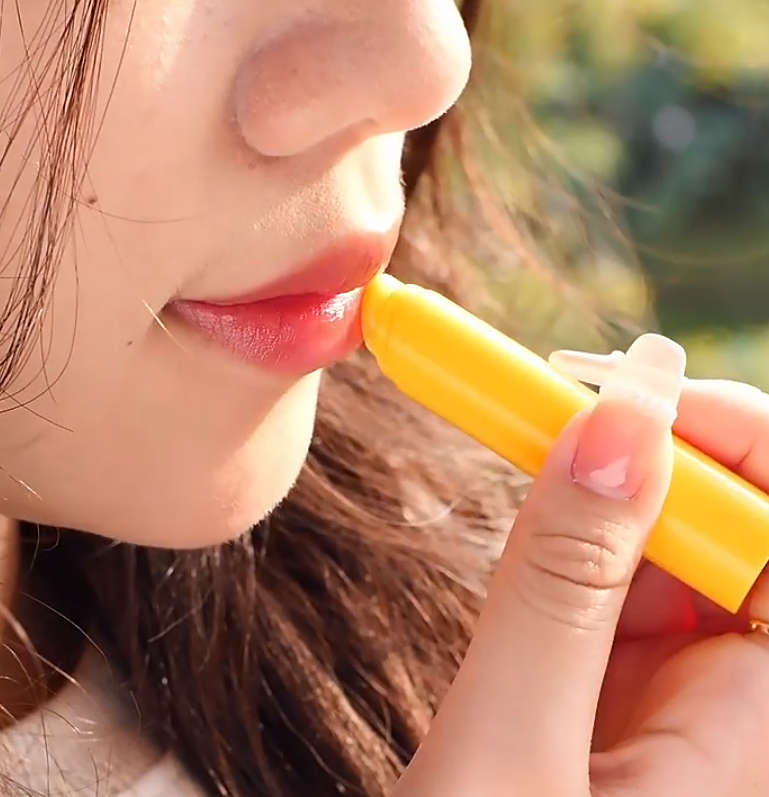 涂润唇膏的时候建议竖着涂,会比打横涂吸收更快,填补唇纹空隙,让嘴唇看起来更加水润。