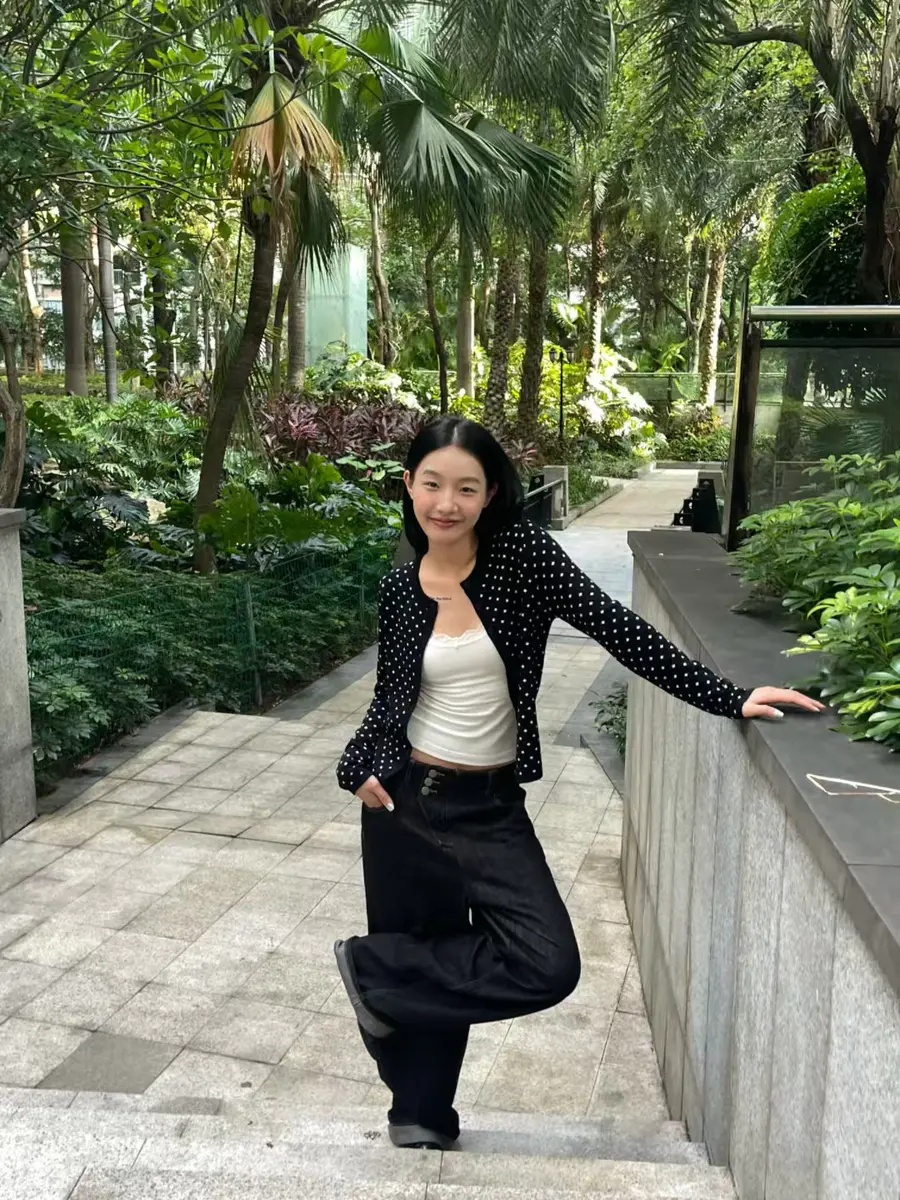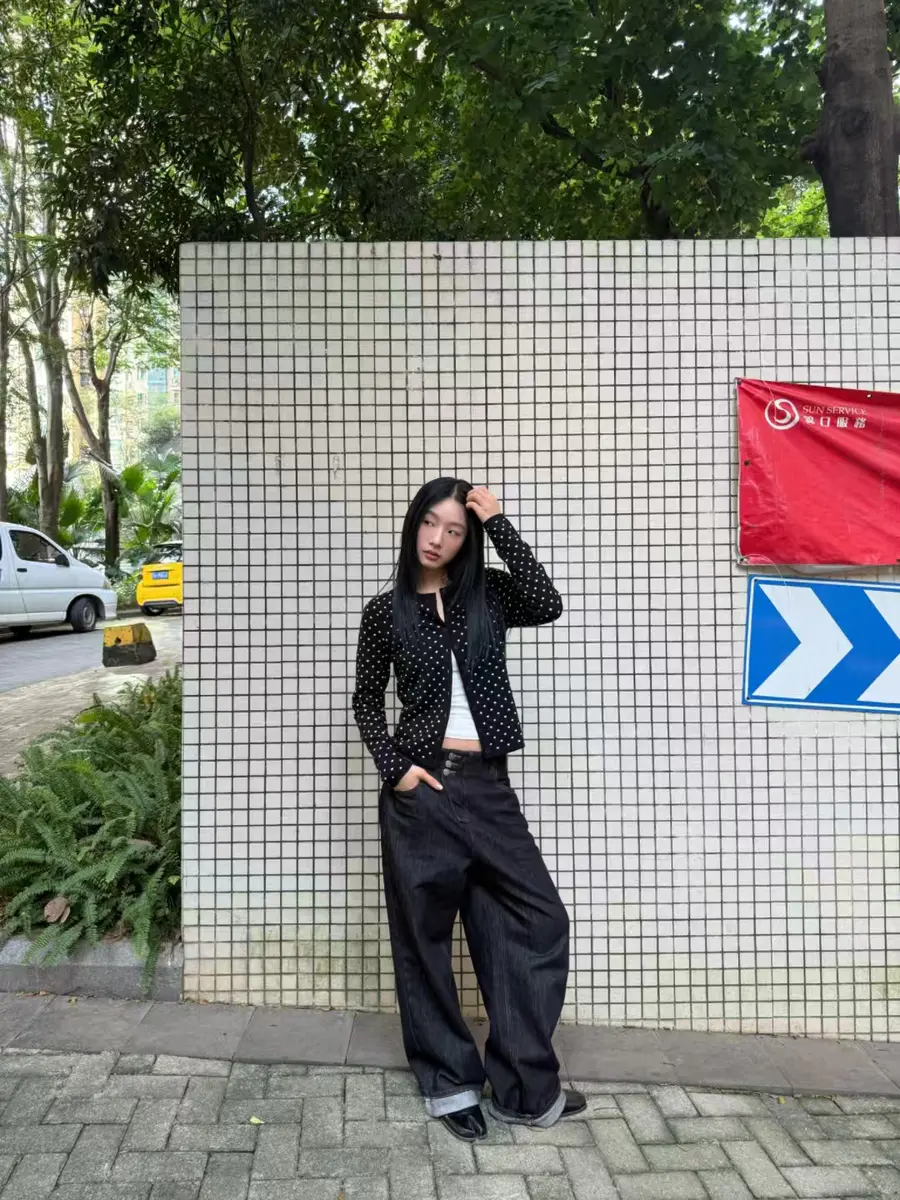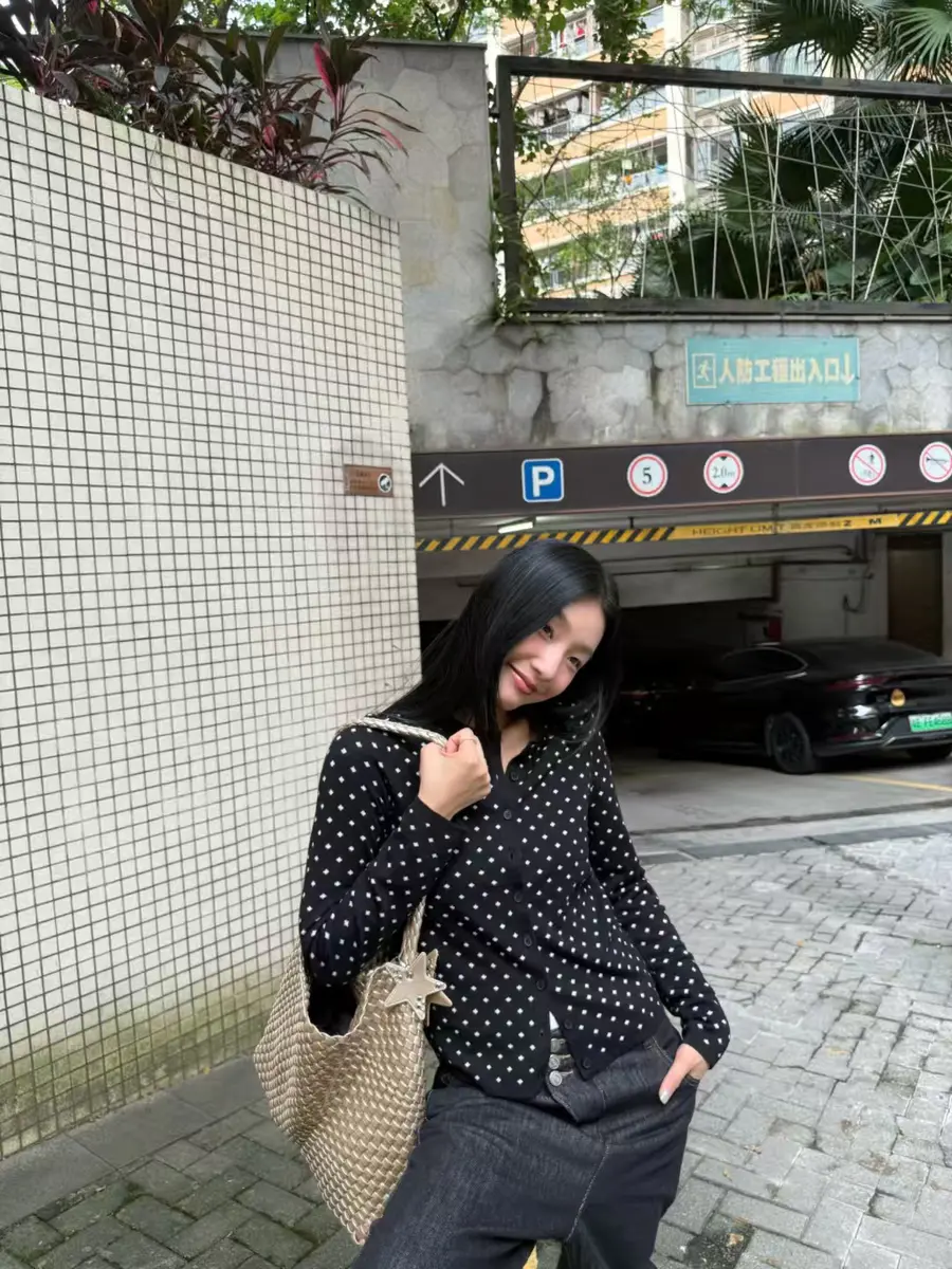 新品上身丨波点开衫+牛仔裤复古甜酷风,出街随手拍都是时尚大片~📸✨