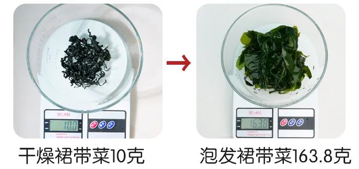 (注意:盐渍裙带菜一般只能泡发3-4倍)